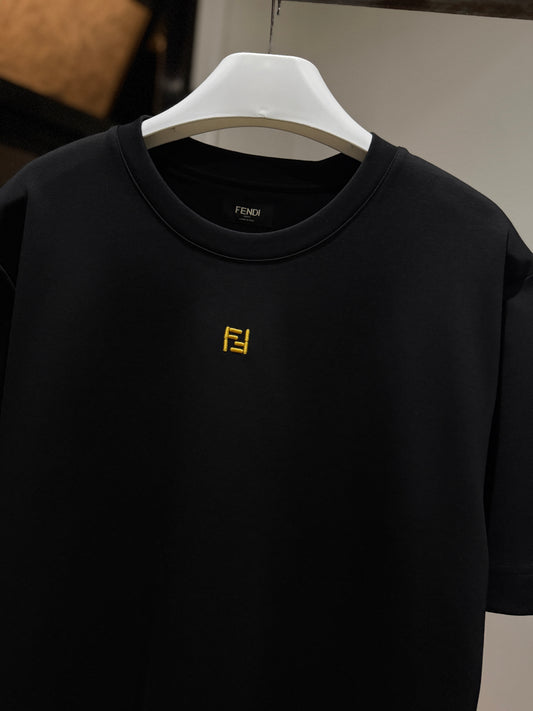 Fendi Mid Logo Cotton T-Shirt (Black/Embroidered)