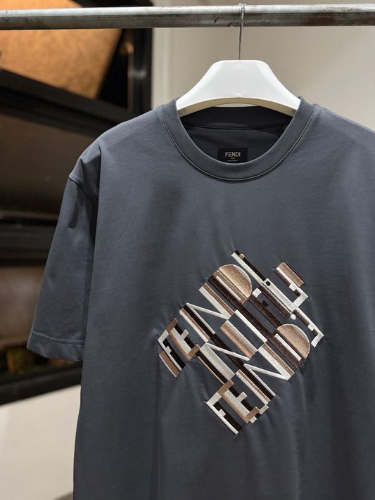 Fendi Cotton T-Shirt (Gray/Embroidered)