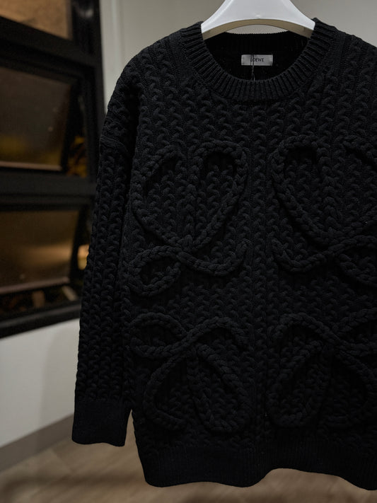 Loewe Anagram Cable Knit Wool Sweater (Black)