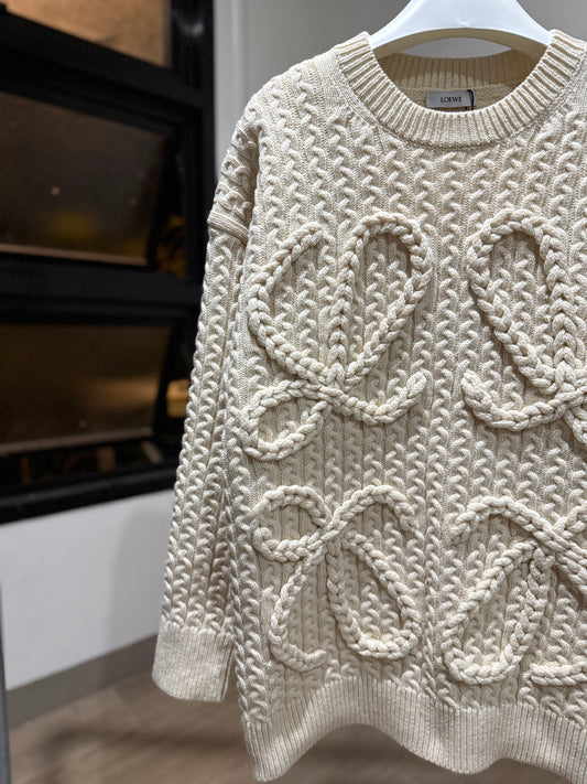 Loewe Anagram Cable Knit Wool Sweater (Cream)