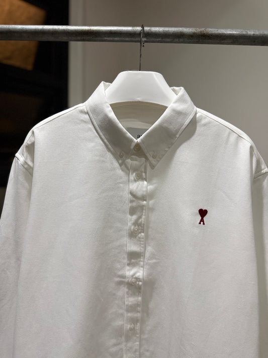 AMI Paris Long-sleeve Button Down (White/Red)