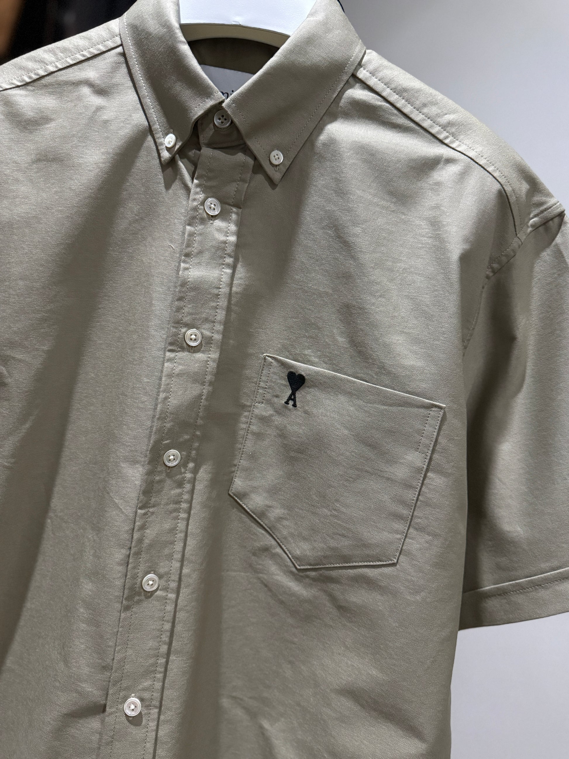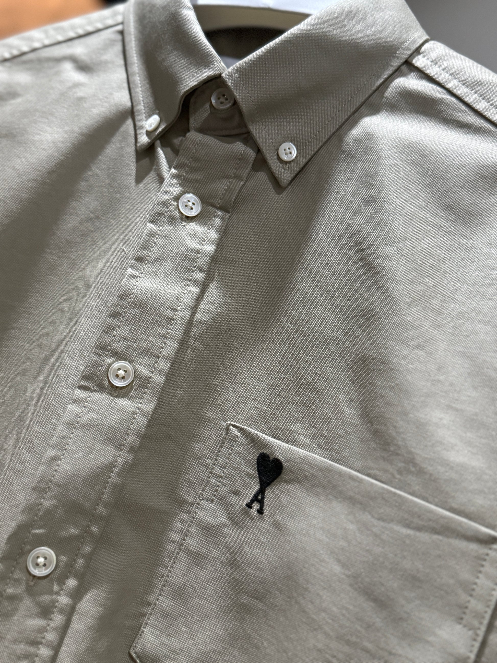 AMI de Coeur Embroidered Cotton Boxy Shirt (Beige/Boxy)