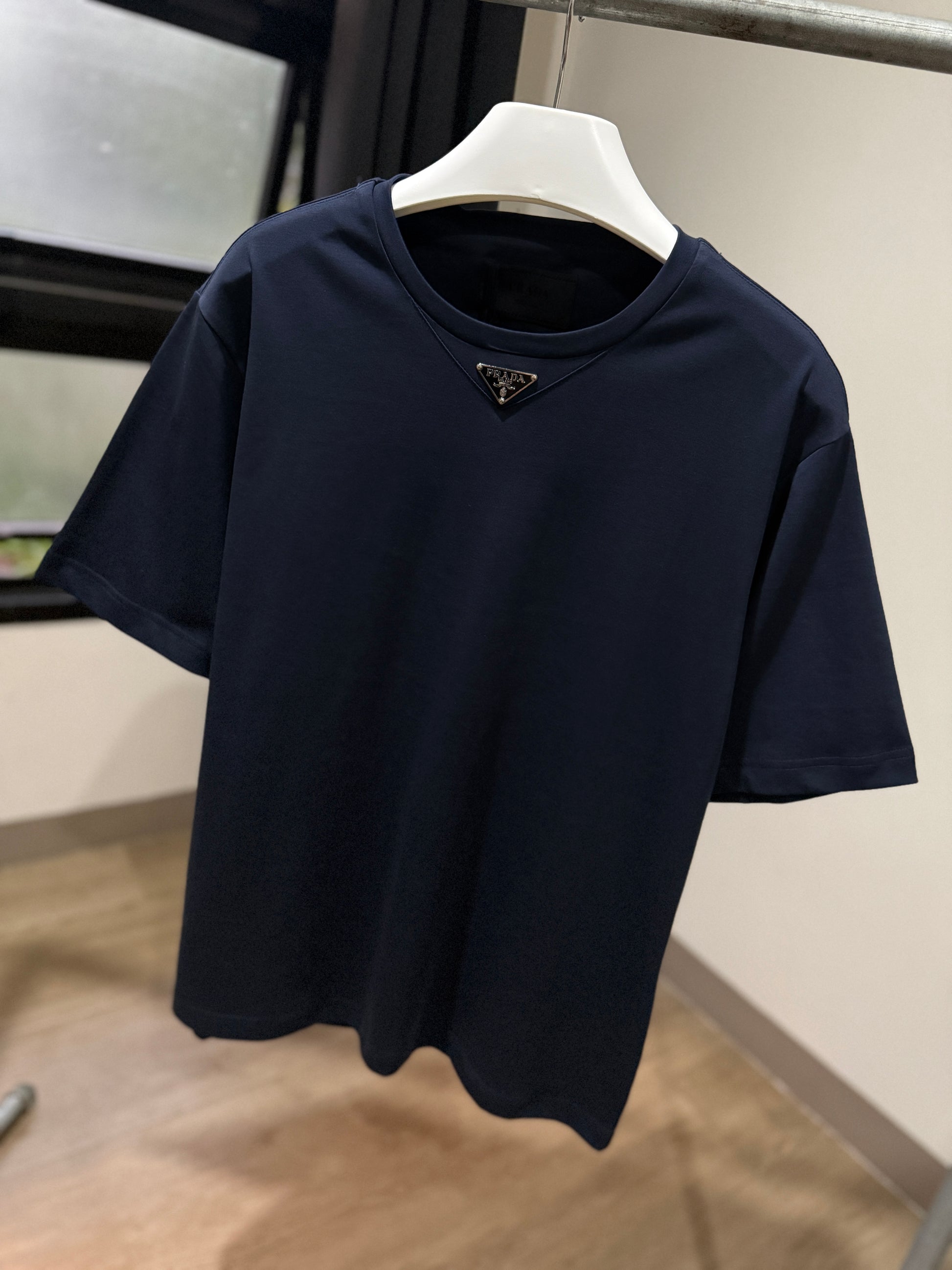 Prada Mid Logo Cotton T-Shirt (Navy)